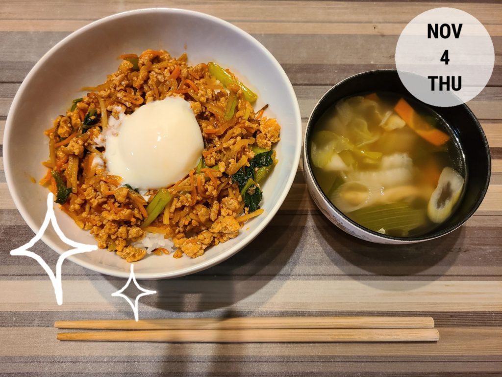 シャキシャキ根菜のビビンバ丼・野菜のスープセット